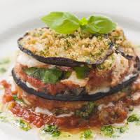 Corta una berenjena en rodajas delgadas. Les pasa una brochita con aceite de oliva, y una pizquita de sal y pimienta. Llévelas al horno, a fuego medio, digamos, 150ºC, durante unos 15 minutos. Cuando estén doraditas, como en la foto, sáquelas y déjelas reposar. Engrase un molde. Coloque una capa de lonjas de berenjena, y cúbrala con un par de cucharadas de pasta de tomate y unas lonchas de queso. Colocamos una capa de berenjena encima del queso, y volvemos a empezar: tomate, queso y más berenjena.